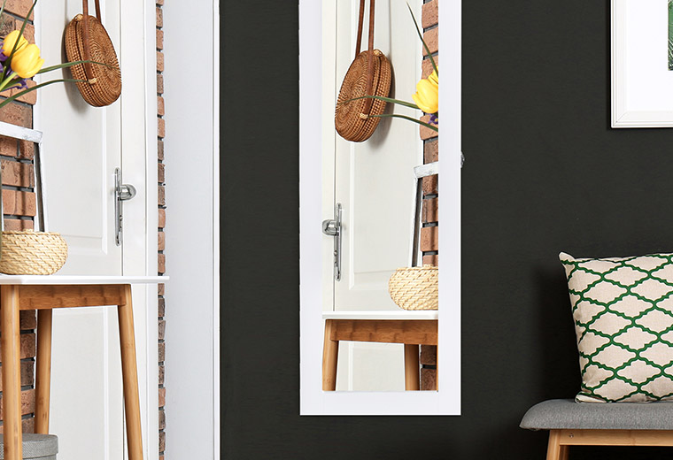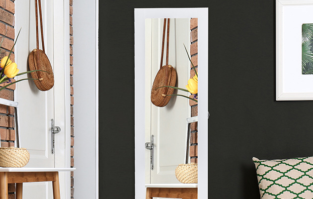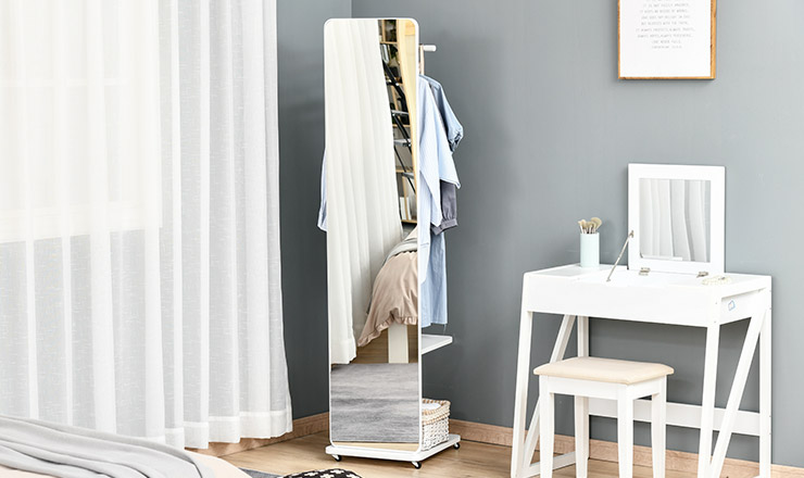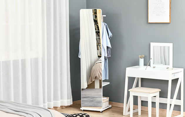 Molto più di una semplice specchiera da terra, nasconde un pratico appendiabiti ed è dotata di ruote, che ti permettono di spostarla facilmente ovunque ti serve.