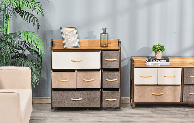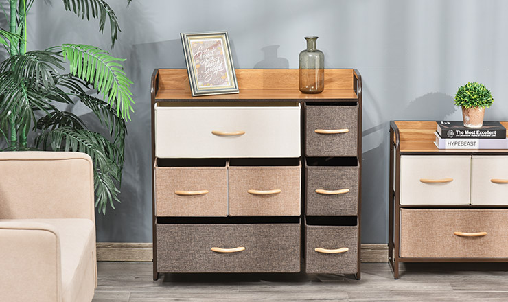 Sono presenti 7 pratici cassetti di diverse dimensioni in tessuto, pieghevoli e facili da riporre quando non ti servono. La struttura in metallo è robusta e i piedini regolabili assicurano massima stabilità. Il dispositivo antiribaltamento previene il rischio di caduta.