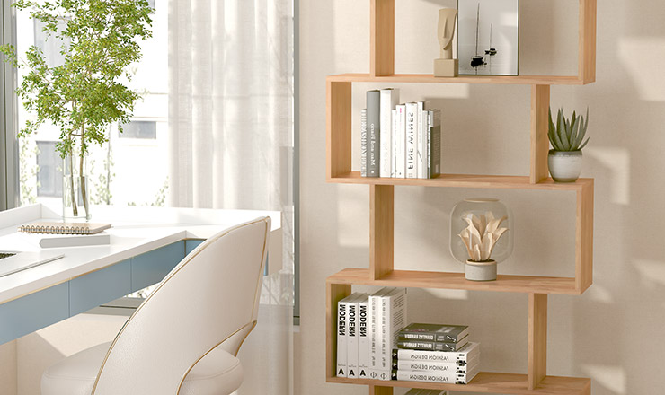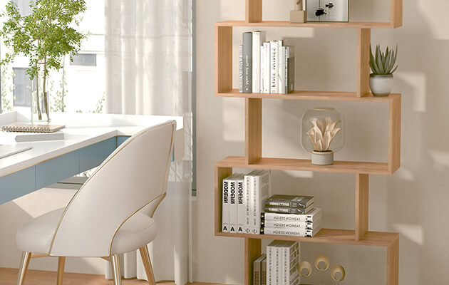 Con il suo design asimmetrico e minimalista questa libreria è ideale per il soggiorno, la camera da letto e l'ufficio. Ha 6 vani spaziosi che ti permettono di riporre libri, DVD, cornici e molto altro. Realizzata in legno truciolare, questa libreria è eco-friendly e facile da pulire.