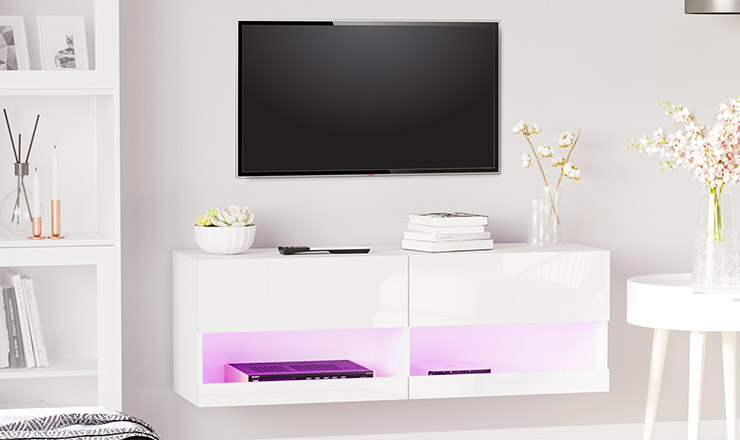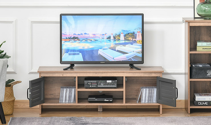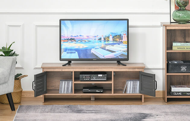 >Progettato per posizionare televisori fino a 42 pollici, è dotato di armadietti e di un vano aperto dove puoi riporre telecomandi e dispositivi elettronici. La base rialzata permette di pulire facilmente il pavimento e il foro passacavi ti aiuta a tenere tutti i fili in ordine.