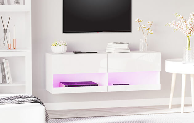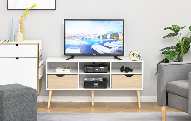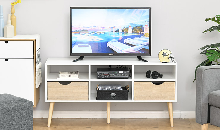 Le sue 5 gambe assicurano la massima stabilità del mobile e facilitano la pulizia del pavimento. I vani aperti e i cassetti ti aiutano a tenere tutto in ordine e ben organizzato, dai telecomandi ai DVD. In più, il dispositivo antiribaltamento rende il mobile più sicuro e stabile.