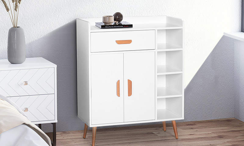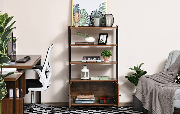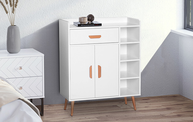 Il suo design ti permette di posizionarla facilmente in ogni angolo delle tue stanze e sfruttare al massimo lo spazio. Le mensole offrono posto per ogni oggetto e il piccolo armadietto ti permette di riporre in modo discreto tutto ciò che vuoi.