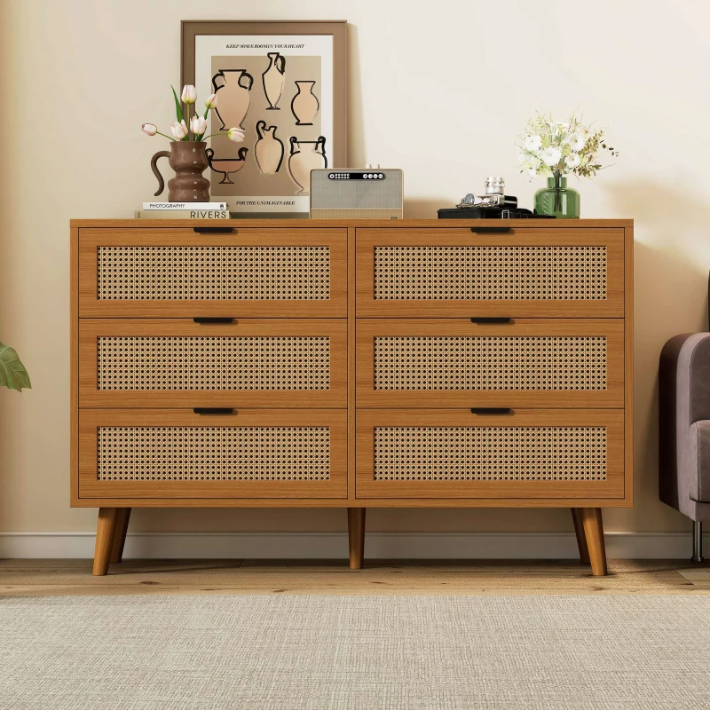 Credenza Elegante con 6 Cassetti, per Camera da Letto e Ufficio, 120x40x76,5 cm, Noce