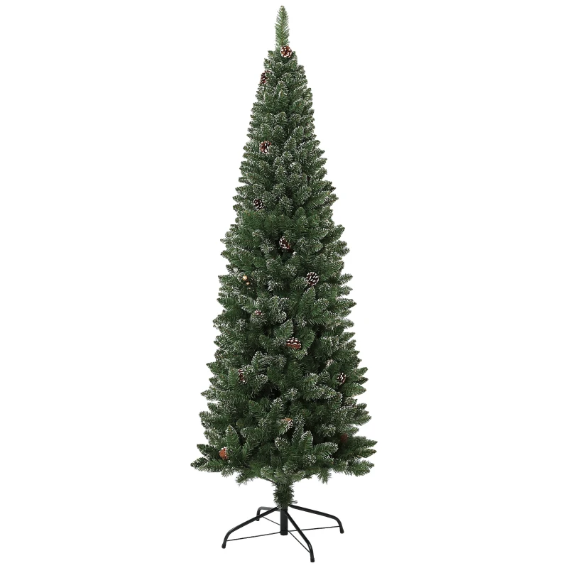HOMCOM Albero di Natale Innevato Alto 180 cm con 618 Rami, Pigne e Base in Acciaio