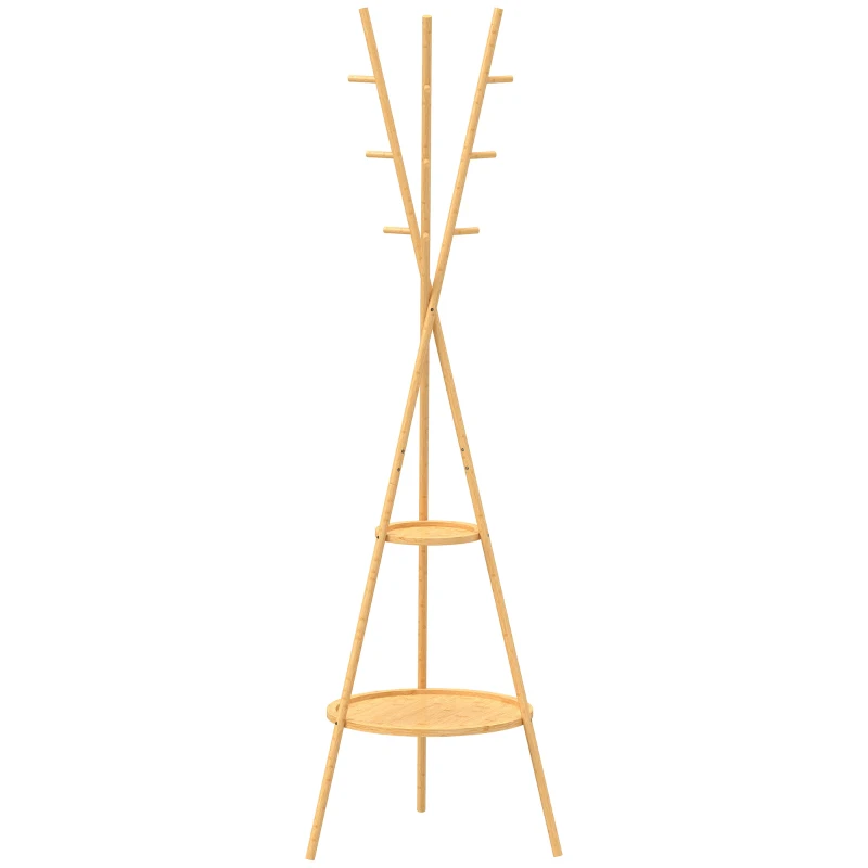 HOMCOM Albero Porta Abiti con 9 Ganci e 2 Ripiani, Naturale