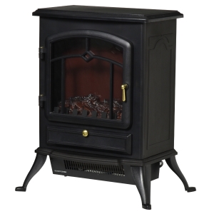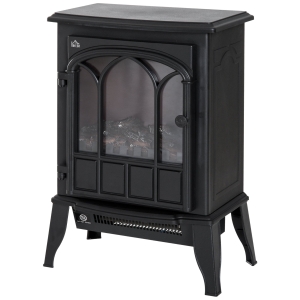 HOMCOM Camino da Terra Elettrico Potenza 1000W / 2000W con Effetto Fiamma Luminosità Regolabile, Caminetto Elettrico con Temperatura Regolabile e Protezione Anti Surriscaldamento, 39x23x56.5cm, Nero