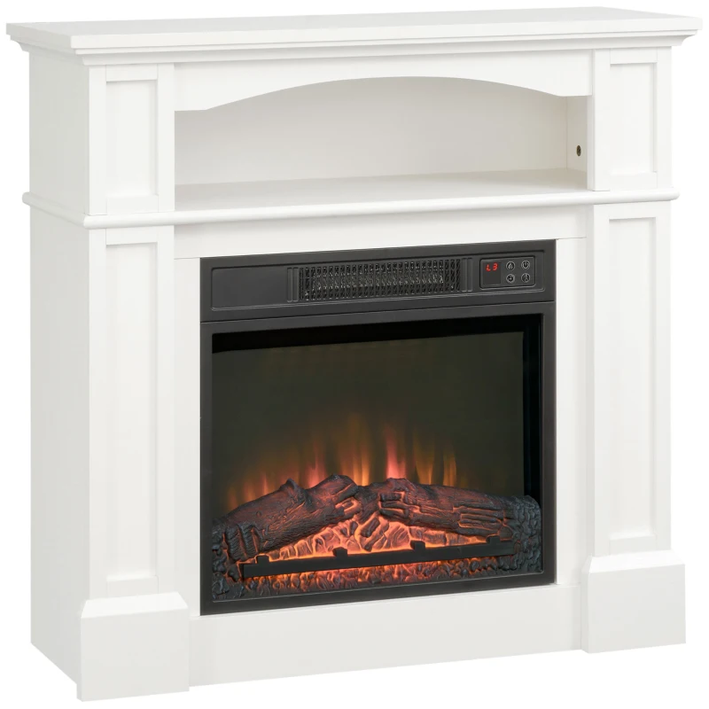 HOMCOM Camino Elettrico con Effetto Fiamma LED Regolabile 1800 W, Telecomando, Timer e Ripiano Integrato, Bianco(m-1)