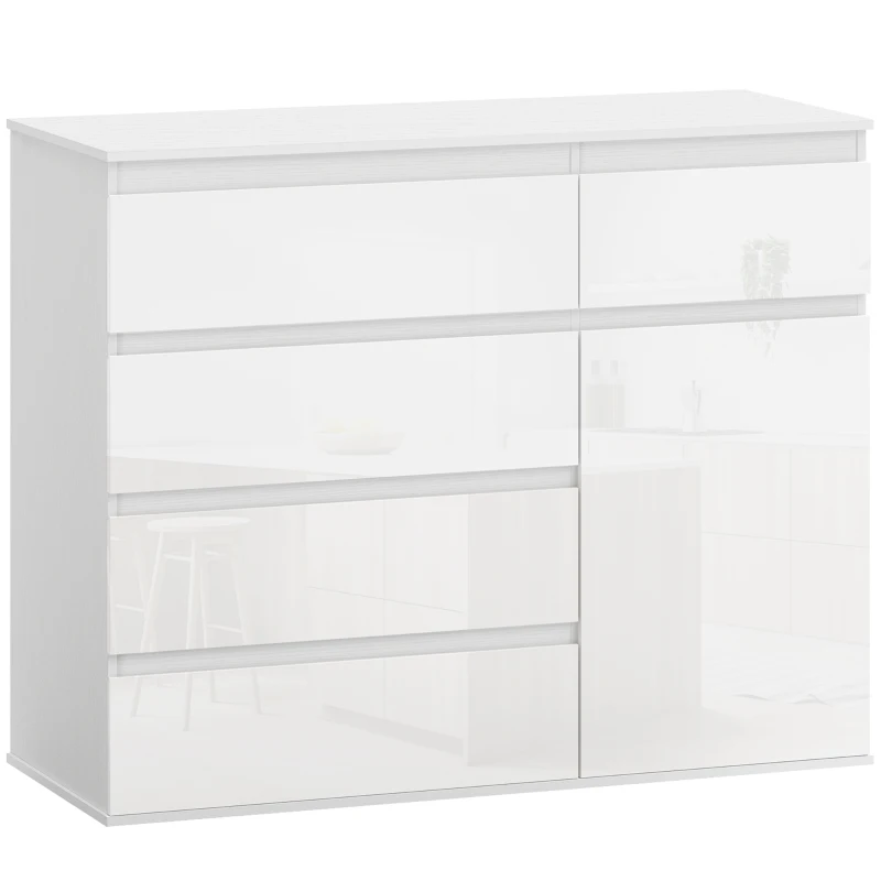 HOMCOM Credenza, Mobile con 5 Cassetti, Ripiano Regolabile, Bianco Lucido.