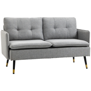 HOMCOM Divano 2 Posti in Tessuto con Cuscini Imbottiti e Gambe in Acciaio 139x68x80cm, Grigio