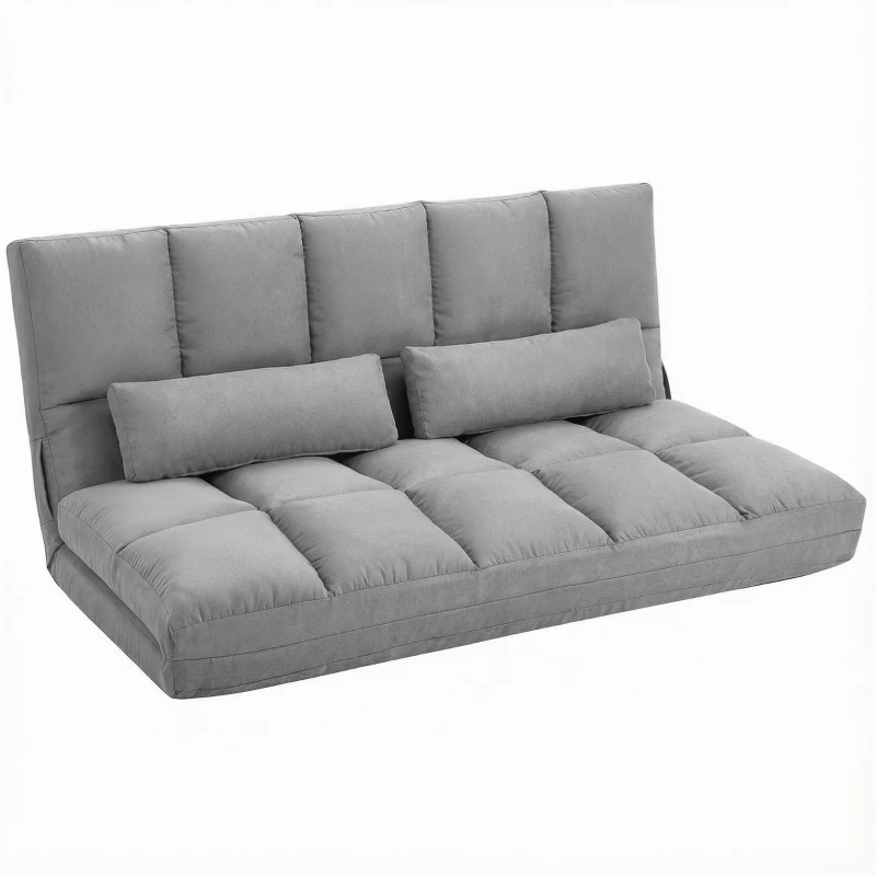 HOMCOM Divano Moderno 2 in 1, Schienale Reclinabile su 7 Livelli e Cuscini, Divano per Soggiorno per TV, Giochi, Lettura, Yoga, Ufficio, 130x73x60 cm, Grigio Chiaro