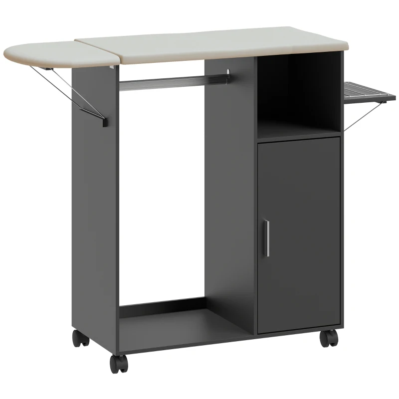HOMCOM Mobile Asse da Stiro con Piano d'Appoggio Effetto Lino, 3 Ripiani a Cubo e Guida, 127x42.5x99 cm, Nero