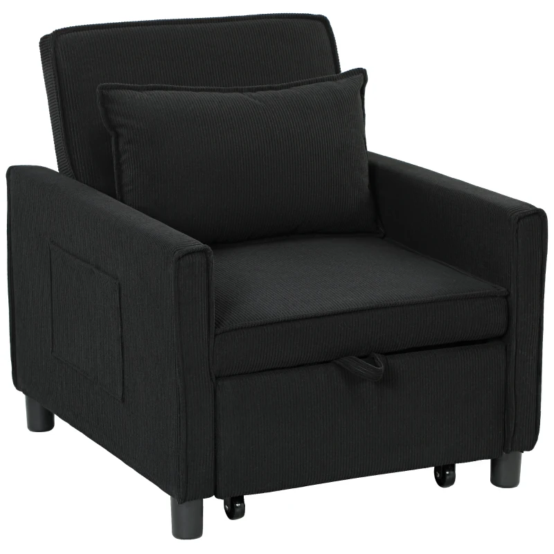 HOMCOM Poltrona letto reclinabile 3 posizioni in velluto a coste, fino a 120 kg, Nero(m-1)