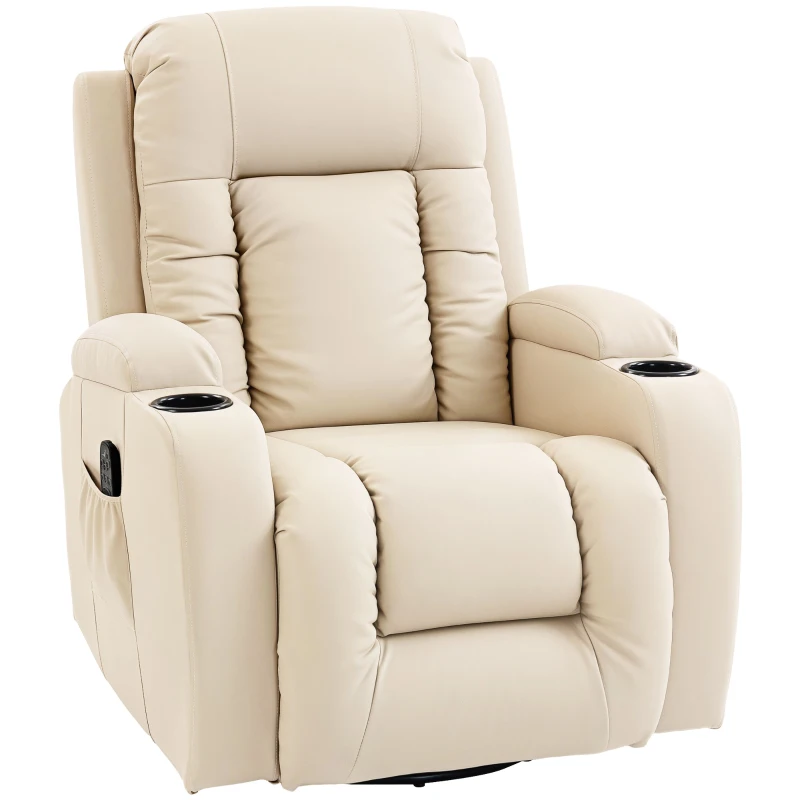 HOMCOM Poltrona Reclinabile Massaggiante e Riscaldata, 8 Punti Massaggio e 3 Modalità con Telecomando, Pelle PU, Crema