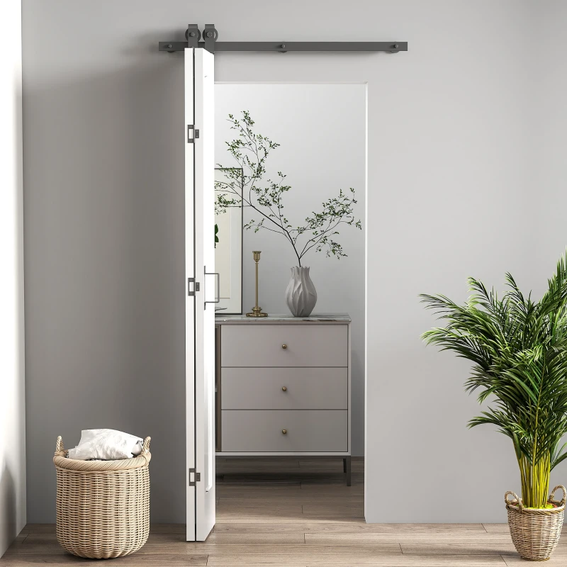 • FUNZIONAMENTO FLUIDO: Equipaggiata con due grandi pulegge, la porta pieghevole a libro fuori muro si apre e chiude con estrema facilità, garantendo prestazioni sicure e un maggior comfort quotidiano