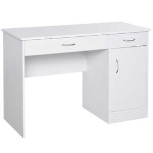HOMCOM Scrivania Moderna con 5 Cassetti e Scomparto Aperto con Serratura e 2 Chiavi, 110x50x76cm, Bianco