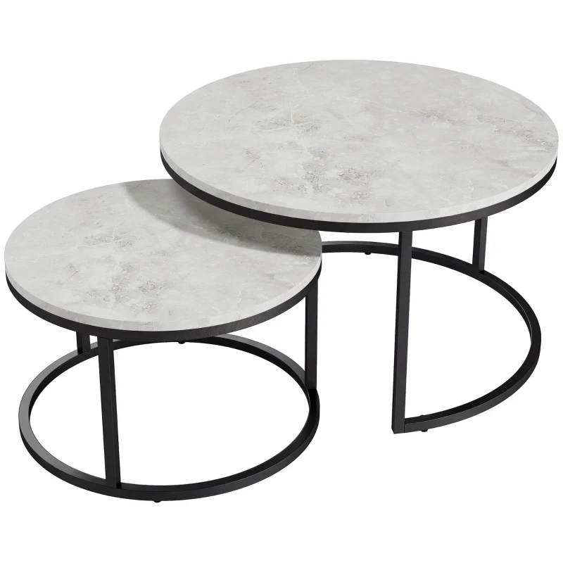 HOMCOM Set 2 Tavolini da Caffè Sovrapponibili Rotondi in Metallo e MDF Effetto Marmo, Grigio e Nero
