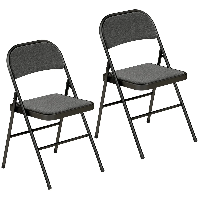 HOMCOM Set di 2 Sedie Pieghevoli, Sedie da Pranzo Portatili, Telaio in Acciaio, 45x46x78 cm, Nero