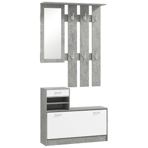 HOMCOM Set Mobile da Ingresso con Appendiabiti a 6 Ganci, Mobile Scarpiera con Cassetto e Specchio, Grigio