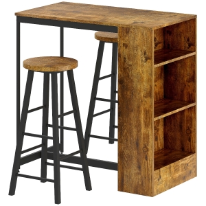 HOMCOM Set Tavolo 2 Sgabelli Alti da Bar in Legno Isola Cucina con Portabottiglie e Portabicchieri in Stile Industriale