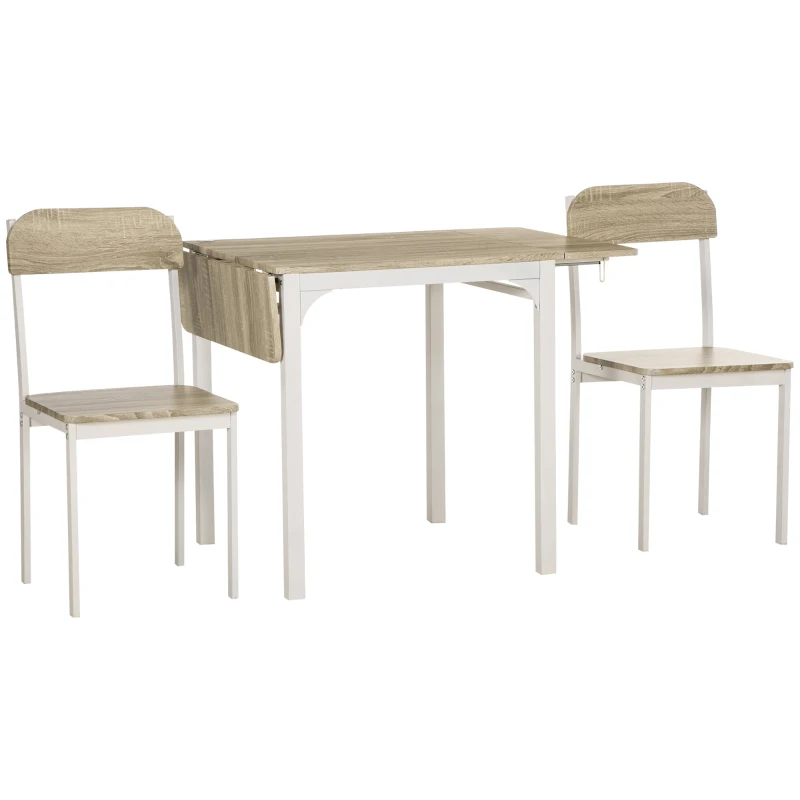 HOMCOM Set con Tavolo Pieghevole e 2 Sedie da Pranzo in Legno e Metallo, Colore Legno