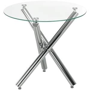 HOMCOM Tavolo da Pranzo Rotondo per 2-4 Persone in Vetro e Gambe in Acciaio, Ø80x74cm