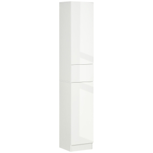 kleankin Mobile Bagno con Ripiano Regolabile, 2 Ripiani Chiusi e un Cassetto in Legno, 30x28x180 cm, Bianco