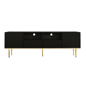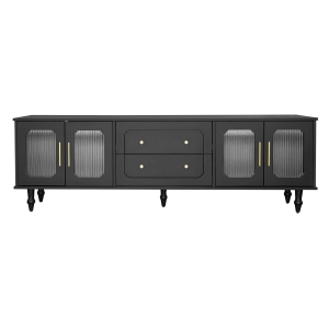 Mobile Porta TV in Stile Retro con Maniglie Dorate, Ampio Spazio di Stoccaggio, Porta in Vetro e Gambe in Legno Massello, 175x38x55,5 cm, Nero