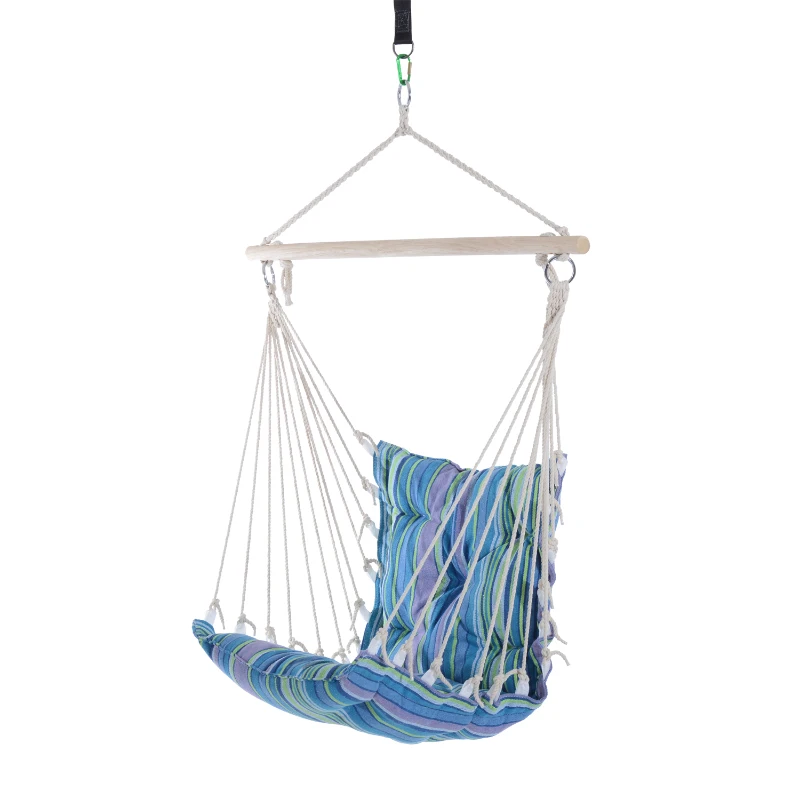 Outsunny Amaca Sedia Sospesa Imbottita con Corde e Supporto in Legno e Cotone a Righe