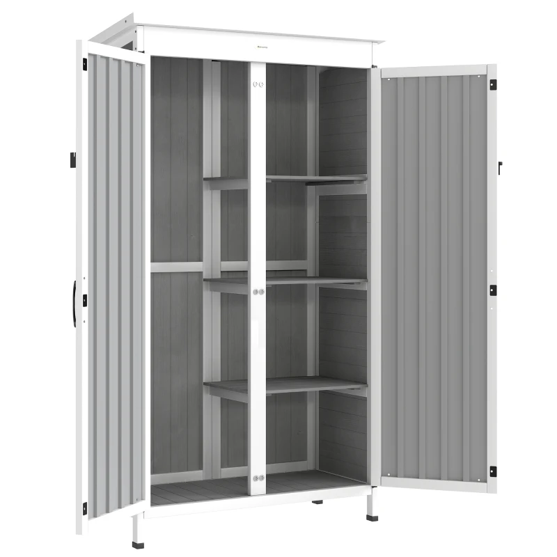 Outsunny Armadio da Giardino con Ripiani Rimovibili e Porta Bloccabile, in Legno e Acciaio, 94x43x166 cm, Bianco e Nero