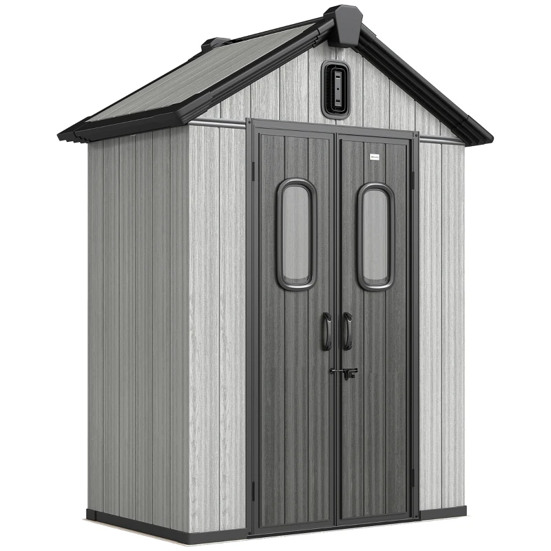 Outsunny Capanno Giardino 160L x 98P x 217A cm, Plastica, Doppie Porte Bloccabili, Grigio(m-5)