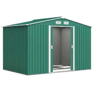Outsunny Casetta da Giardino con Porta Scorrevole, in Acciaio, 345x280.5x169-201cm, Verde