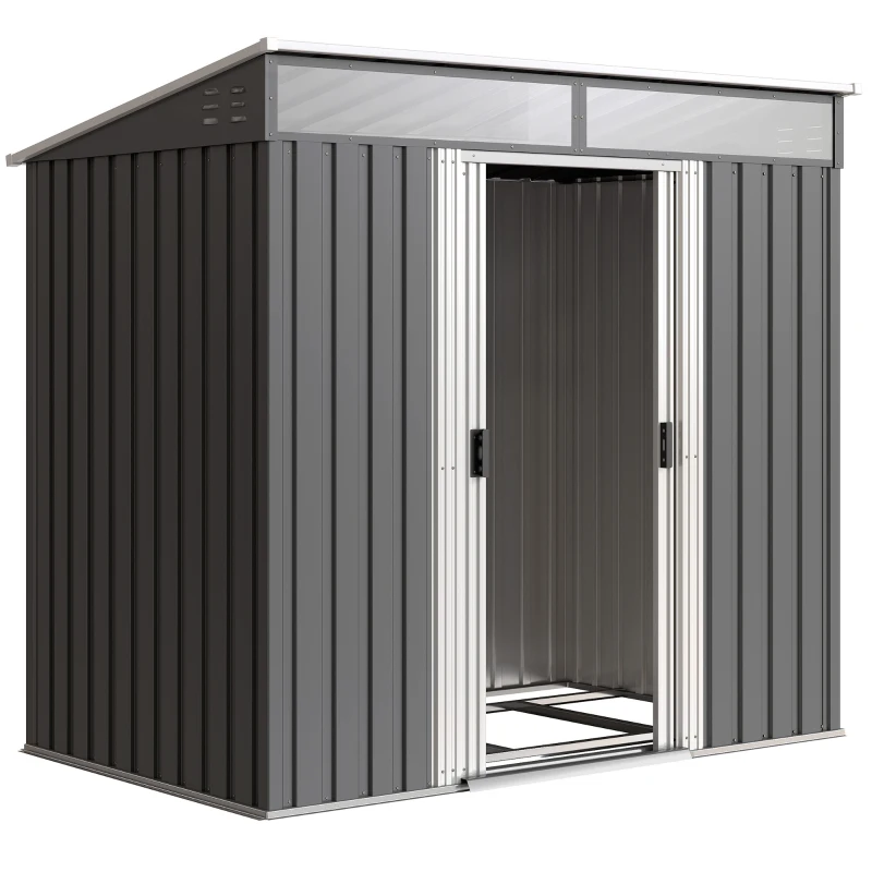 Outsunny Casetta da Giardino Porta Attrezzi con 4 Finestre e 2 Ganci, in Acciaio Zincato, 195x122x181.5 cm, Grigio