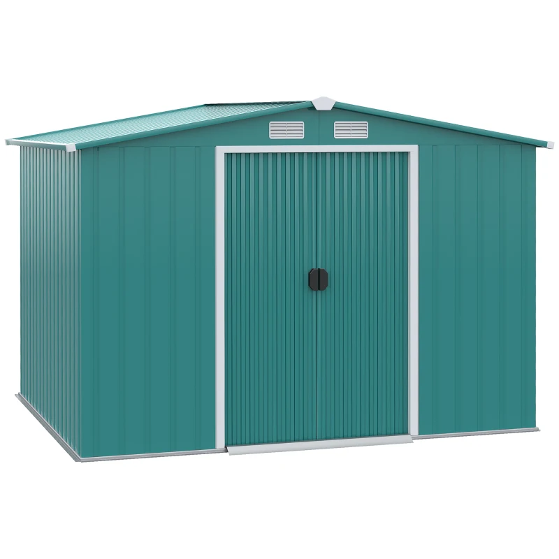 Outsunny Casetta da Giardino Porta Utensili in Lamiera di Acciaio con Porte Scorrevoli, 260x206x179 cm, Verde