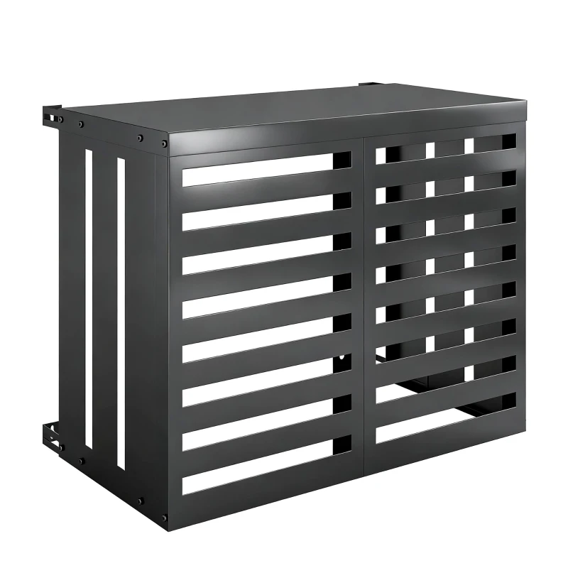 Outsunny Copertura per Condizionatore Esterno, in Acciaio Zincato, Recinzione con Doghe per Giardino, Grigio Scuro