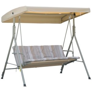 Outsunny Dondolo 3 Posti con Tettuccio Regolabile e Cuscini, in Acciaio e Poliestere, 170x110x153 cm, Verde e Bianco