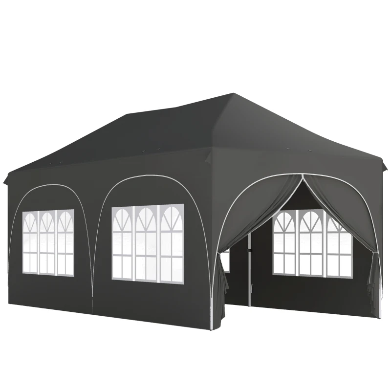 Outsunny Gazebo pieghevole 6x3 m Pop-up con 4 pannelli rimovibili altezza regolabile e borsa per il trasporto Grigio scuro