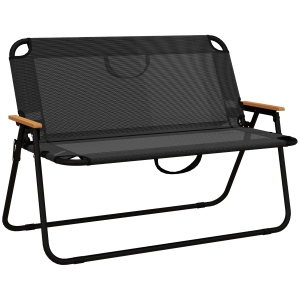 Outsunny Panchina da Giardino Moderna 2 Posti con Tavolino e Foro per Ombrellone Arredamento da Esterno 165x56x85.5cm Nero