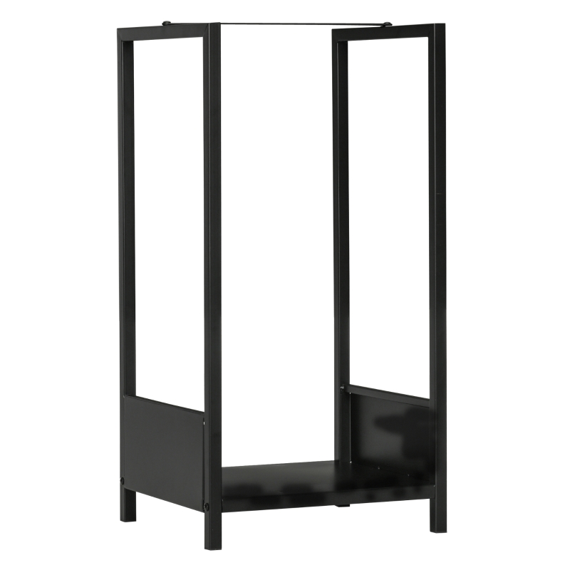 Outsunny Scaffale Portalegna da Esterno e Interno in Acciaio con Base Rialzata, 39x35x76cm, Nero(m-7)