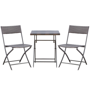 Outsunny Set Mobili da Balcone in PE Rattan, Tavolo da Giardino con Poltroncine e Cuscini, Marrone