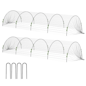 Outsunny Telo di Copertura Piante a Rete con Archetti Flessibili e Clip di Fissaggio, Bianco