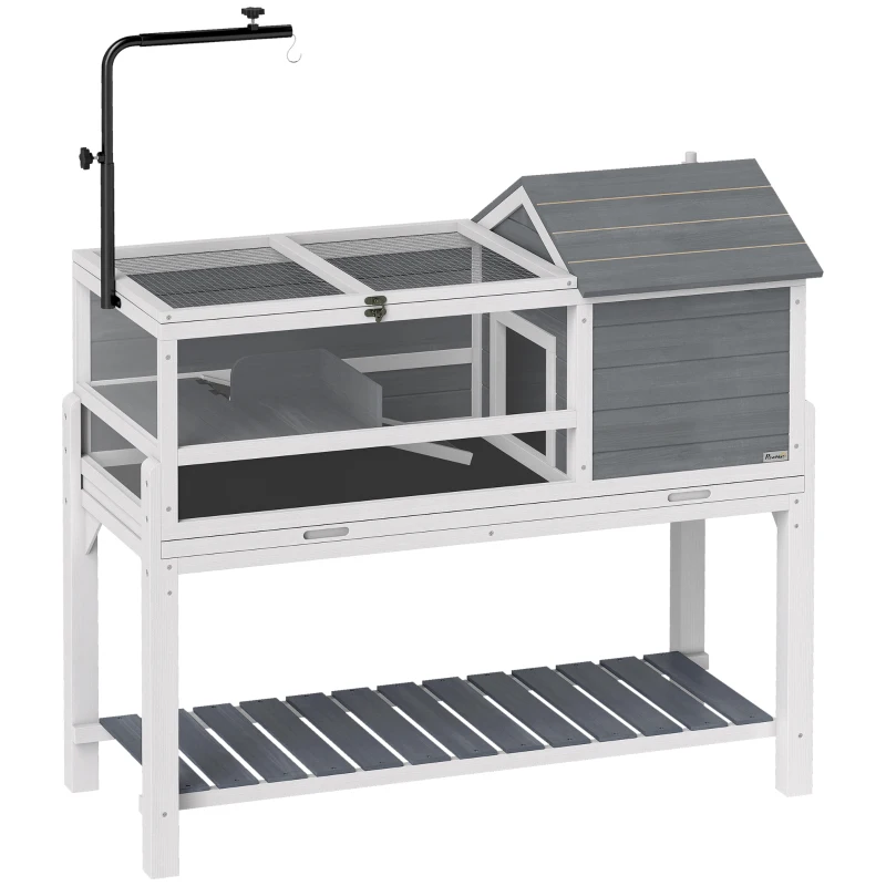 PawHut Casa per Tartarughe con Supporto Lampada e Ripiano, Habitat per Piccoli Animali, in Legno, Grigio