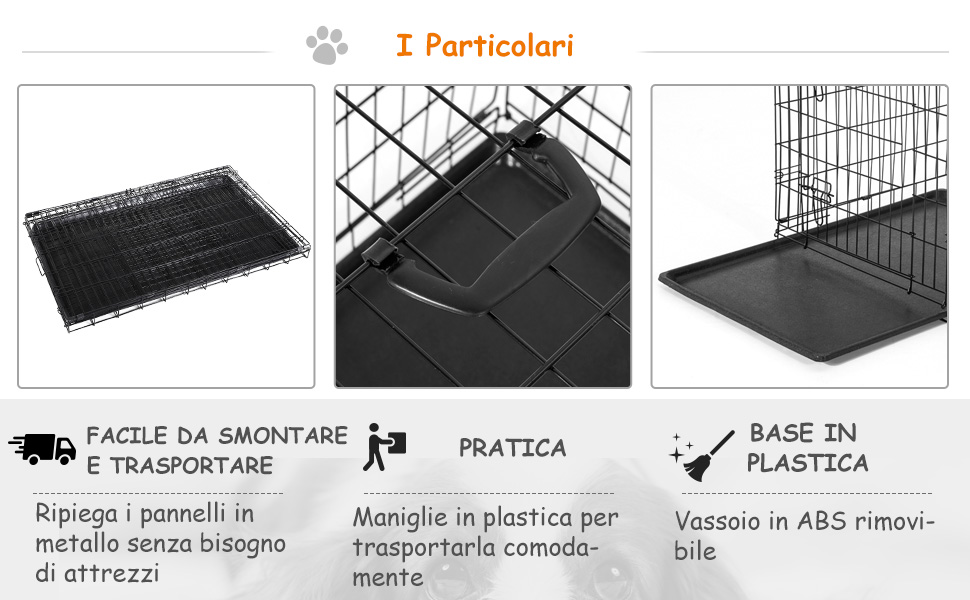 PawHut Gabbia per Animali Domestici Trasportino per Cani e Gatti Pieghevole in Acciaio Doppia Apertura, 76x46x52cm, Nero