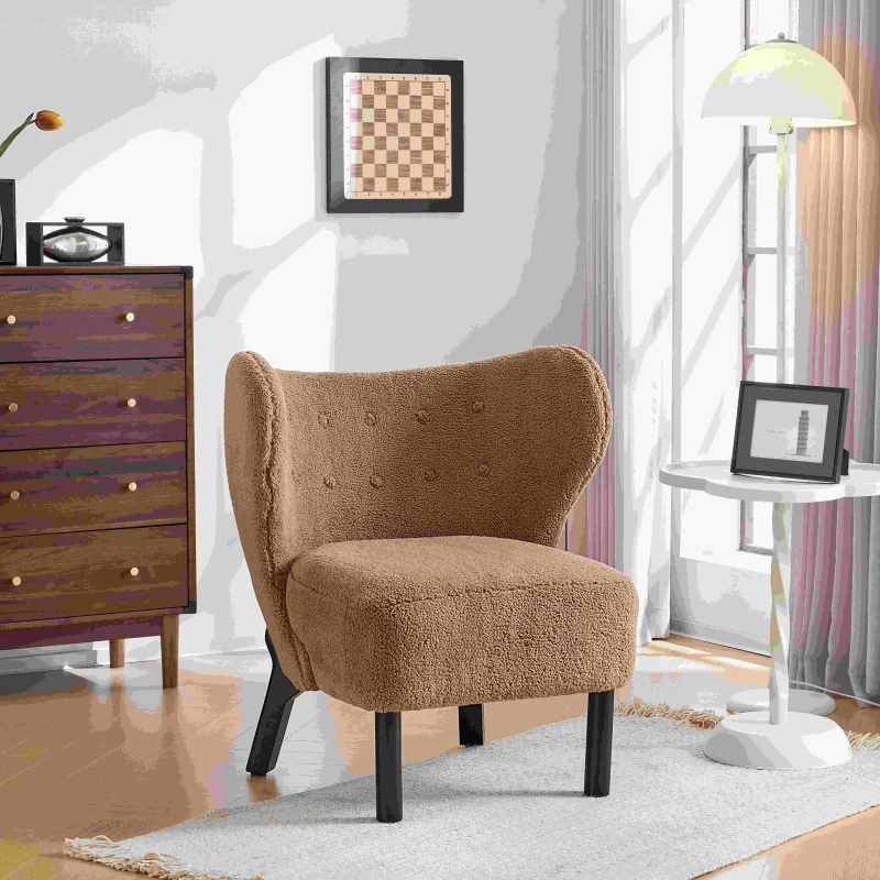 Poltrona Relax Moderna per Camera da Letto con Schienale Alto e Gambe in Legno, in Tessuto Sherpa, Design Elegante con Ampia Seduta, Marrone(m-8)