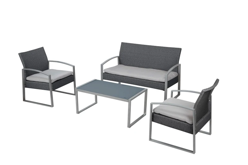 Salotto Alicante Black Washed (2 Poltrone 1 Divano 1 Tavolo) Cuscini Colore Bianco