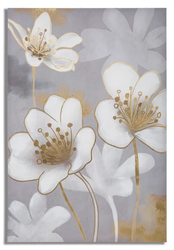 • Stampa su tela con telaio in legno dal design floreale. I colori pastello uniti alle decorazioni dorate creano un delicato contrasto che dona un tocco di lucentezza ad ogni ambiente.