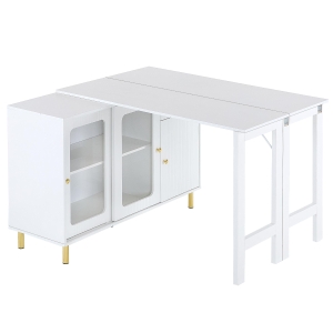 Bancone bar girevole a 360° con 2 cassetti e armadietto con anta scorrevole, 3 ripiani aperti, Bianco