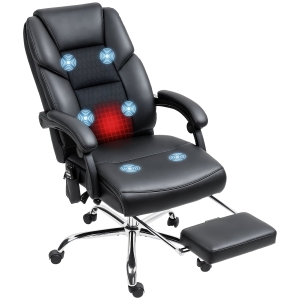 Vinsetto Sedia da Ufficio Massaggiante in Pelle PU ad Altezza Regolabile con Poggiapiedi e Telecomando, 66x67x115-123 cm, Marrone
